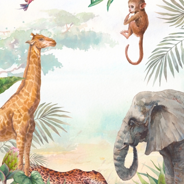 - Produktnummer: 1479765495 Eine Fototapete, die sich perfekt für ein Kinderzimmer eignen würde. Es zeigt wilde Tiere in umgeben von tropischer Vegetation. Zu sehen sind u.a. ein Zebra, ein Löwe, Affen. Das Wandgemälde ist farbenfroh, viele Farben sind zu sehen, aber sie sind nicht übermäßig intensiv. Sie wurden angemessen abgeschwächt, so dass das Ganze sehr freundlich für das Auge ist. Wenn…