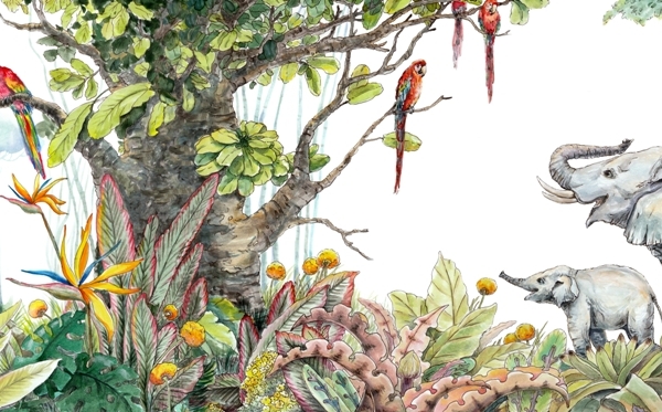 - 3D, Fototapeten, JUNGE, KINDER, Kinder, MÄDCHEN, SCHLAFZIMMER, TIERE, TROPISCHE BLÄTTER, WOHNZIMMER, Zimmer