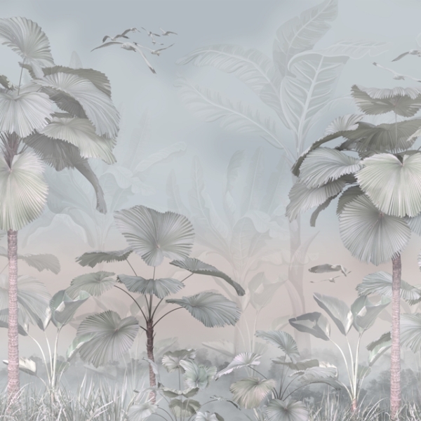 - Produktnummer: 12091394732 Ein einzigartiges Wandgemälde, das mit einem Hauch von Geheimnis und Romantik begeistert. Es zeigt einen Palmenwald, über den malerisch Vögel gleiten. Diese Kombination von Motiven macht den gesamten Look extrem leicht und stilvoll. Das Wandgemälde ist in dezenten Pastellfarben gehalten. Das Grau wurde sanft aufgehellt, und an einigen Stellen wurden rosa Farbtöne hinzugefügt. Es wurde auch eine kleine…