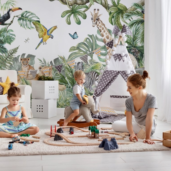 - Fototapeten, JUNGE, KINDER, Kinder, MÄDCHEN, TIERE, TROPISCHE BLÄTTER, Zimmer