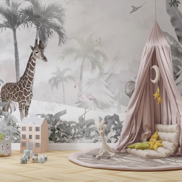- Produktnummer: 11925836580 Die Wände eines Kinderzimmers können auf viele Arten gestaltet werden. Das vorgeschlagene Wandgemälde wird sehr gut funktionieren. Es zeigt exotische Tiere, die in einen zarten Nebel gehüllt sind. Daher wirken sie sehr ruhig, was bedeutet, dass sie bei Kindern keine Ängste auslösen. Hinzu kommt die dominierende graue Farbgebung, die den Effekt noch verstärkt. Das Wandbild ist so konzipiert,…