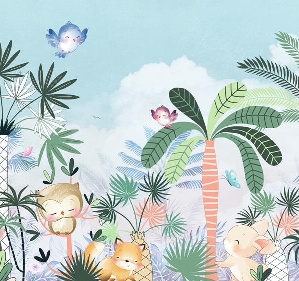 - Fototapeten, JUNGE, KINDER, Kinder, MÄDCHEN, TIERE, TROPISCHE BLÄTTER, Zimmer