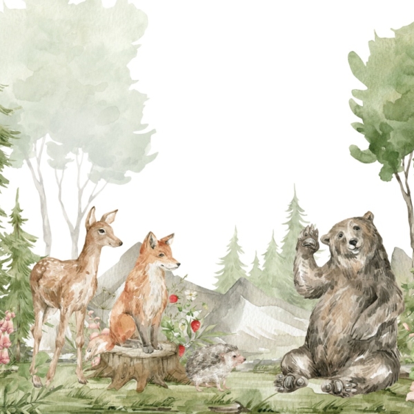 - Produktnummer: 1463550124 Eine außergewöhnlich charmante Fototapete, die sich besonders gut für Kinderzimmer eignet. Sie ist für Kinder im Vorschulalter geeignet, aber es spricht nichts dagegen, zu verwenden, wenn Sie ein Zimmer für Ihr Kind im jüngeren Schulalter dekorieren. Es stellt Waldtiere inmitten der Natur dar. Im Vordergrund steht ein lächelnder Teddybär, der jeden zu grüßen scheint, der ihn ansieht. Die…