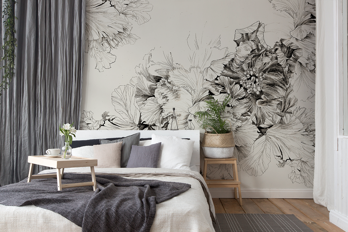 - BLUMEN, BÜRO, Farben, Fototapeten, NATUR, Rosatöne, SCHLAFZIMMER, Schwarz und Weiß, Stil, Vintage und Retro, WANDMALEREI, WOHNZIMMER, Zimmer