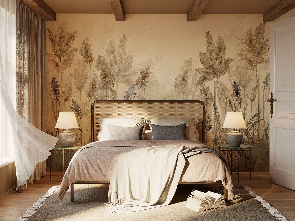 Dieses Wandbild ist mehr als nur ein Ornament, es ist ein poetischer Eindruck, der ein Interieur mit natürlichem Rhythmus und Zartheit umhüllt und ihm Klasse, Ruhe und zeitlosen Charme verleiht.