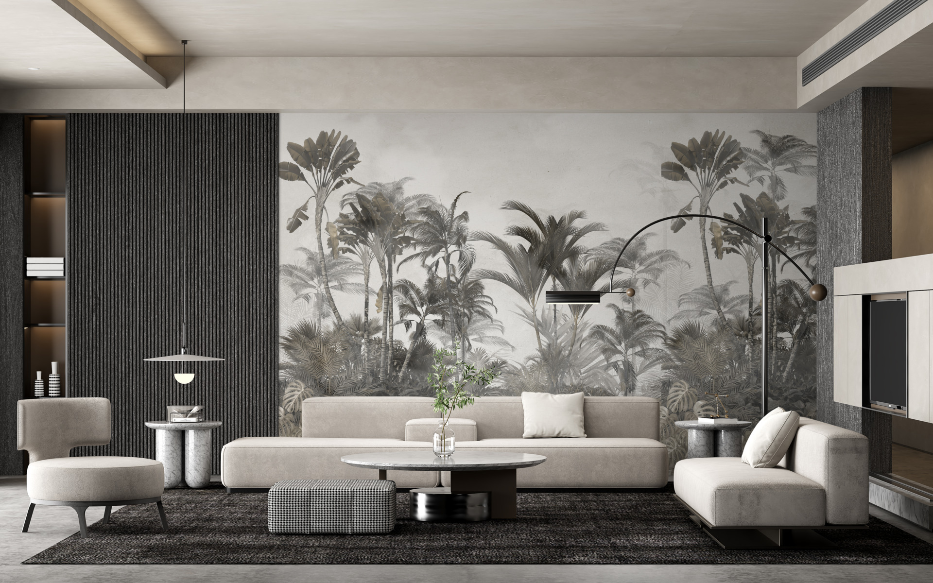 Die Fototapete Colourless Jungle ist die ideale Wahl für Liebhaber minimalistischer Inneneinrichtungen. Mit dieser ungewöhnlichen Tapete können Sie in jedem Raum eine einzigartige Atmosphäre schaffen und einen subtilen Akzent setzen.