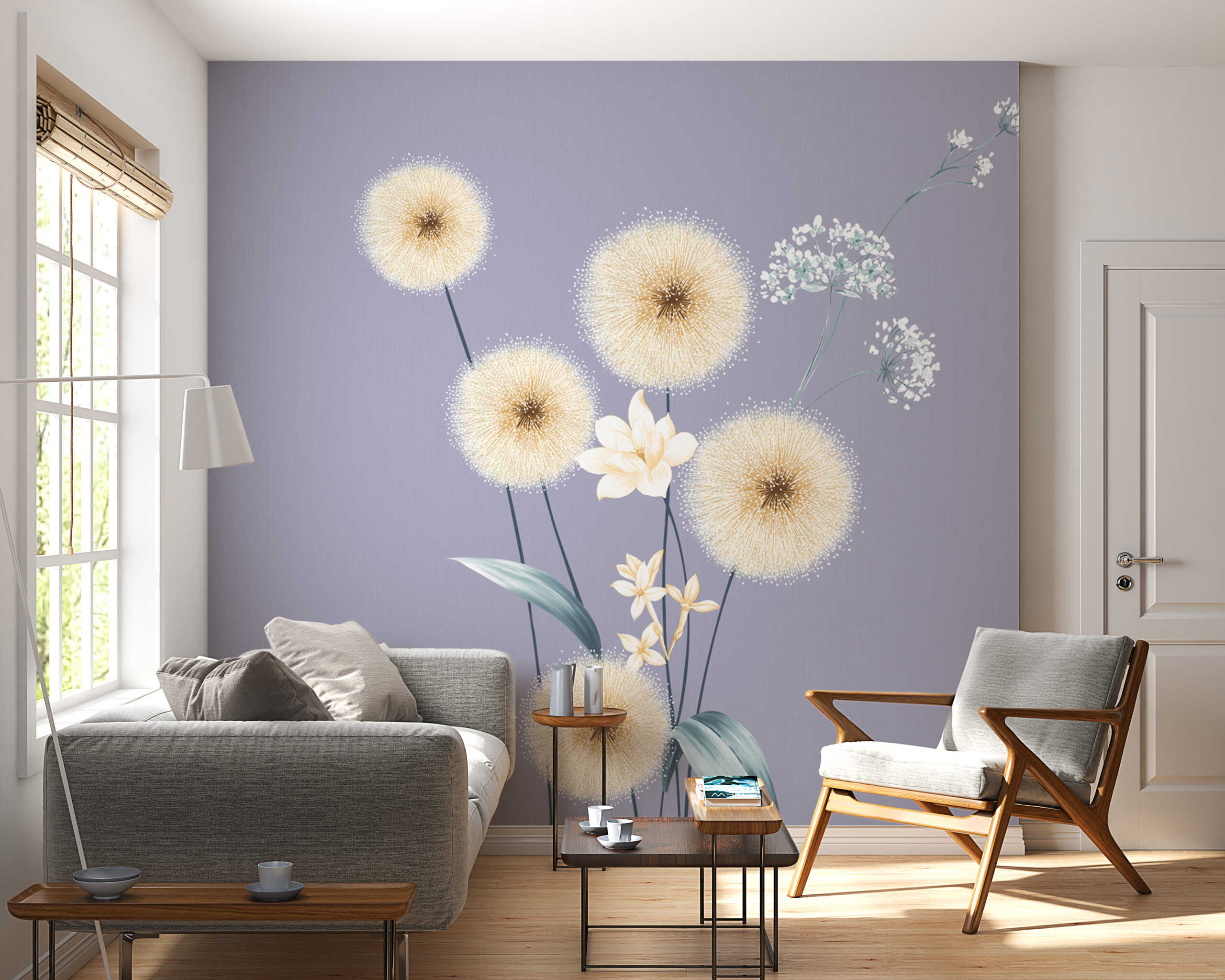 Die Fototapete ‚Delicate Blowers‘ ist ideal für alle, die nach einer subtilen und dennoch stilvollen Dekoration für ihr Interieur suchen. Das Motiv der zarten Pusteblumen verleiht dem Raum eine leichte und angenehme Atmosphäre.
