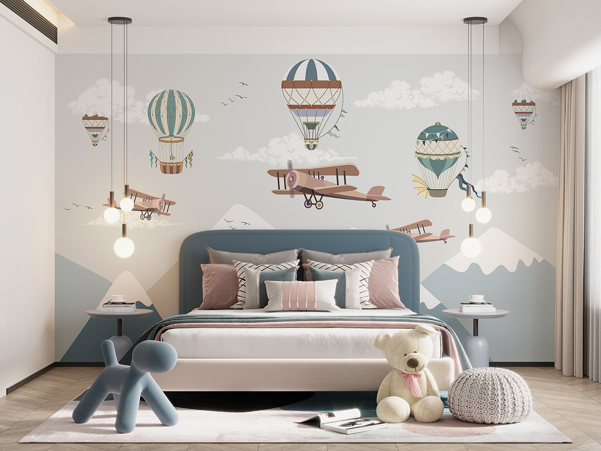 Fototapete Flugzeuge in den Bergen – Ein aufregendes Abenteuer im Kinderzimmer