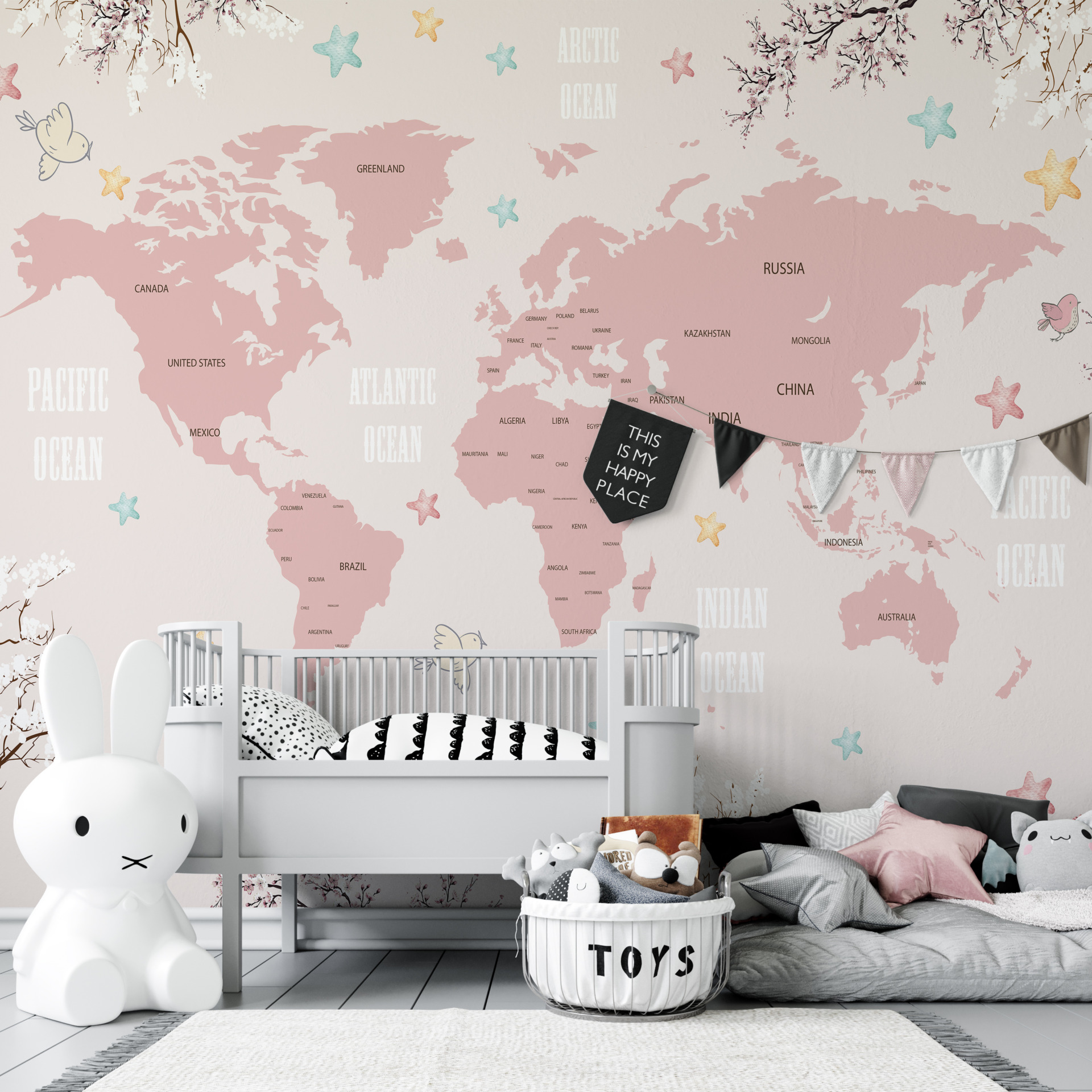 Die Frühlingskarte der Welt ist eine ungewöhnliche Fototapete, die jedem Raum Charme und Originalität verleiht. Es nimmt Sie mit auf eine Reise zu den faszinierendsten Ecken unseres Planeten, ohne dass Sie Ihr Zuhause verlassen müssen. Er ist ideal für das Wohnzimmer, das Schlafzimmer, das Büro oder das Teenagerzimmer.