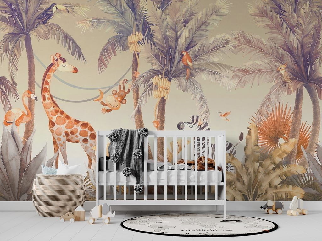 Diese bezaubernde Fototapete ist die perfekte Lösung, um das Zimmer Ihres Kindes zu verschönern. Lassen Sie sich in einen zauberhaften Dschungel voller verspielter Tiere entführen, die den Tag Ihrer Kleinen mit Sicherheit verschönern werden.
