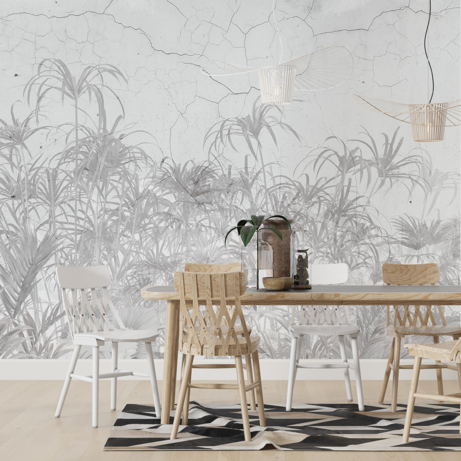 Bestellen Sie noch heute und verwandeln Sie Ihr Interieur mit Hilfe dieser schönen grauen Pflanzenwandtapete!