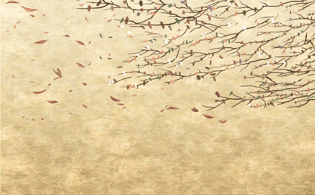 Bringen Sie Wärme und Gemütlichkeit in Ihr Zuhause mit einem Foto, das eine leichte Herbstbrise und tanzende goldene Blätter zeigt. Die Fototapete eignet sich gleichermaßen für das Wohnzimmer, das Schlafzimmer und das Kinderzimmer und verleiht jedem dieser Räume einen einzigartigen Charakter.