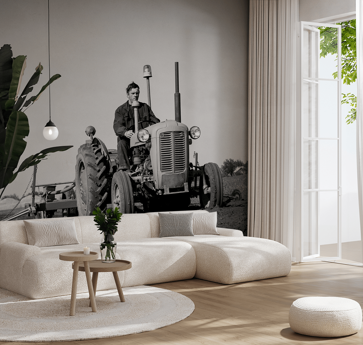Fototapete „Auf dem Landweg“ – Harmonie von Arbeit, Natur und Weite