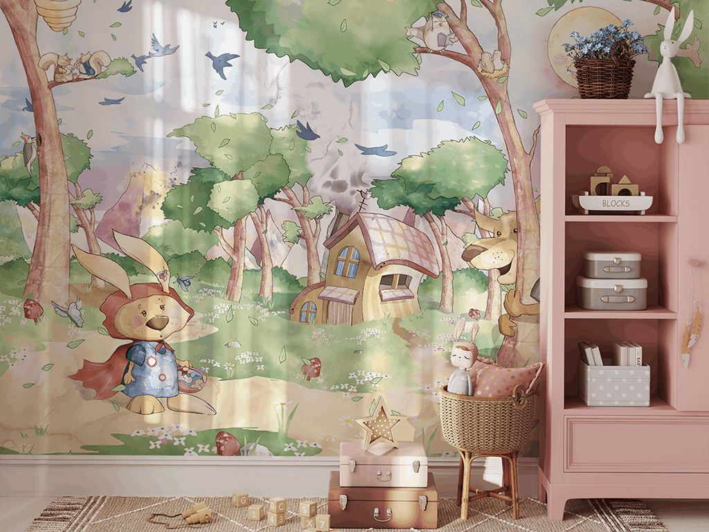 Die Fototapete „Hase als Rotkäppchen“ belebt das Interieur, verleiht ihm Charakter und lässt Sie den Zauber der kindlichen Fantasie jeden Tag neu entdecken.