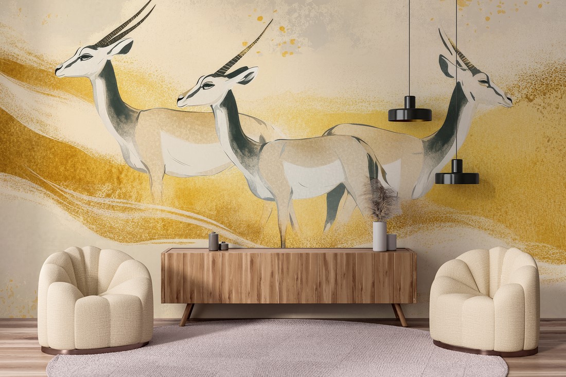Die Fototapete „Wüstenfrieden“ ist eine minimalistische Wanddekoration, die Ihrem Interieur eine Aura der Stille, Harmonie und Weite verleiht. Inspiriert von Wüstenlandschaften – Sand, sanfte Hügel und Antilopen im Zentrum des Motivs – schafft sie eine Atmosphäre der Ruhe und natürlichen Eleganz. Perfekt für Wohnzimmer, Schlafzimmer, Arbeitszimmer oder Entspannungsecke – sie vermittelt ein Gefühl von Ruhe, optisch vergrößertem Raum und subtilem Luxus. Die Fototapete „Wüstenfrieden“ ist ideal für alle, die minimalistischen Stil, die Ästhetik der Natur und Interieurs schätzen, die Ruhe und Besinnung fördern.