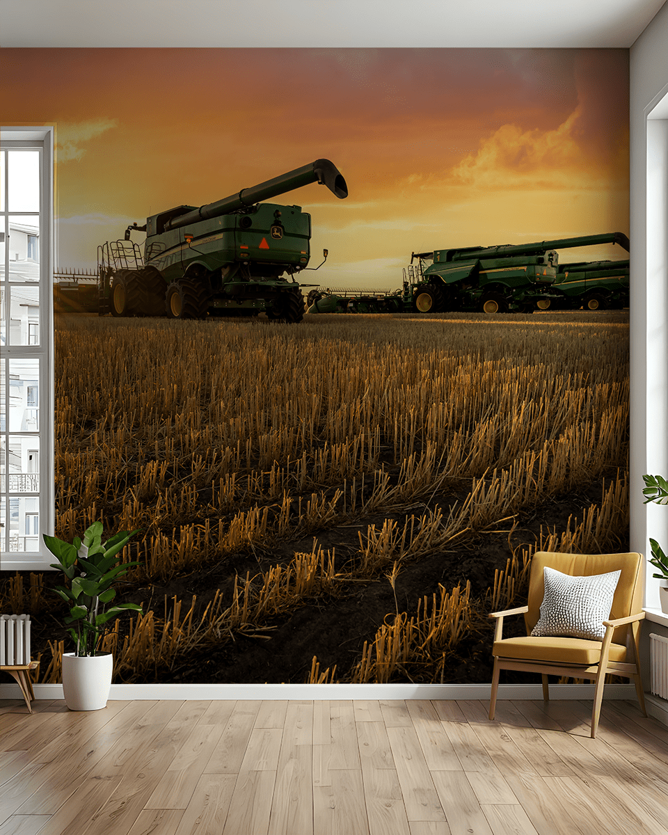 Fototapete „Goldene Ernte“ – die Wärme der untergehenden Sonne, die Kraft der Natur und die rustikale Harmonie der Landschaft