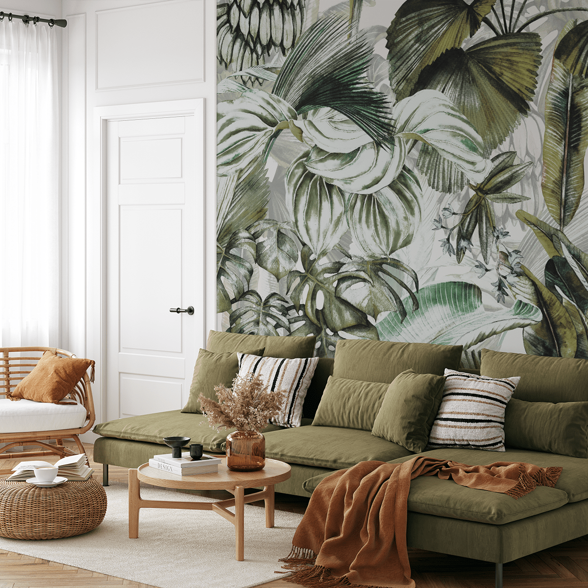 Diese Dekoration ist mehr als nur ein Muster – sie ist eine Einladung, einen Raum voller Leben, Grün und einer einzigartigen Naturatmosphäre zu gestalten.