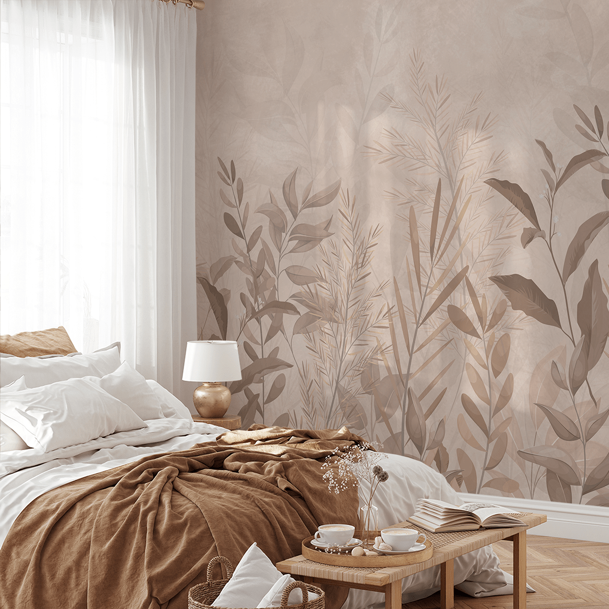 Verleihen Sie Ihrem Zuhause mit der Fototapete „Herbstnebel“ eine einzigartige Atmosphäre. Das detailreich gestaltete, dezente Muster aus Blättern und Pflanzen in warmen Beige- und Brauntönen erinnert an Herbstnebel und verleiht Ihren Räumen eine ruhige und behagliche Eleganz. Sanfte Farbübergänge und natürliche Motive fügen sich perfekt in klassische wie moderne Einrichtungsstile ein.