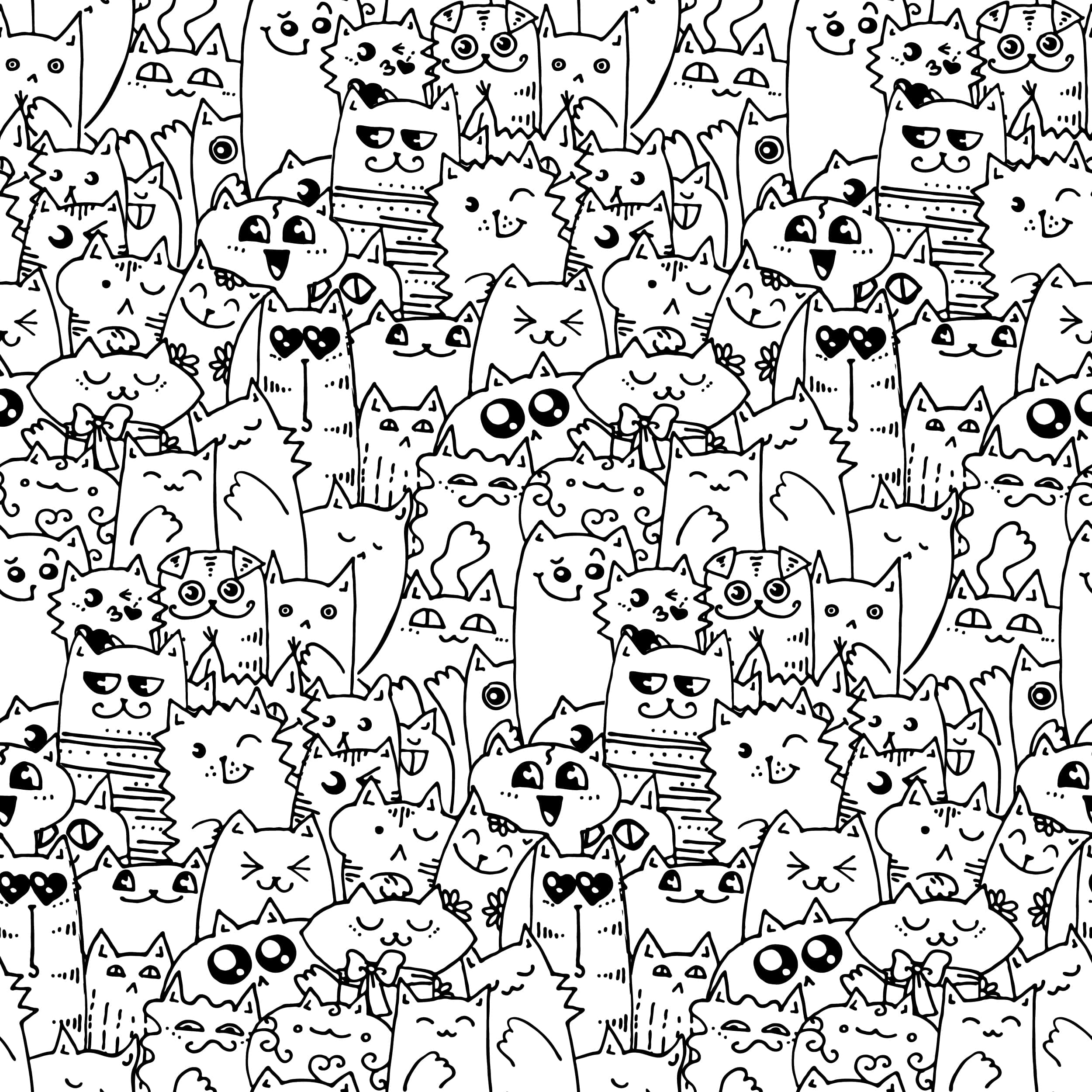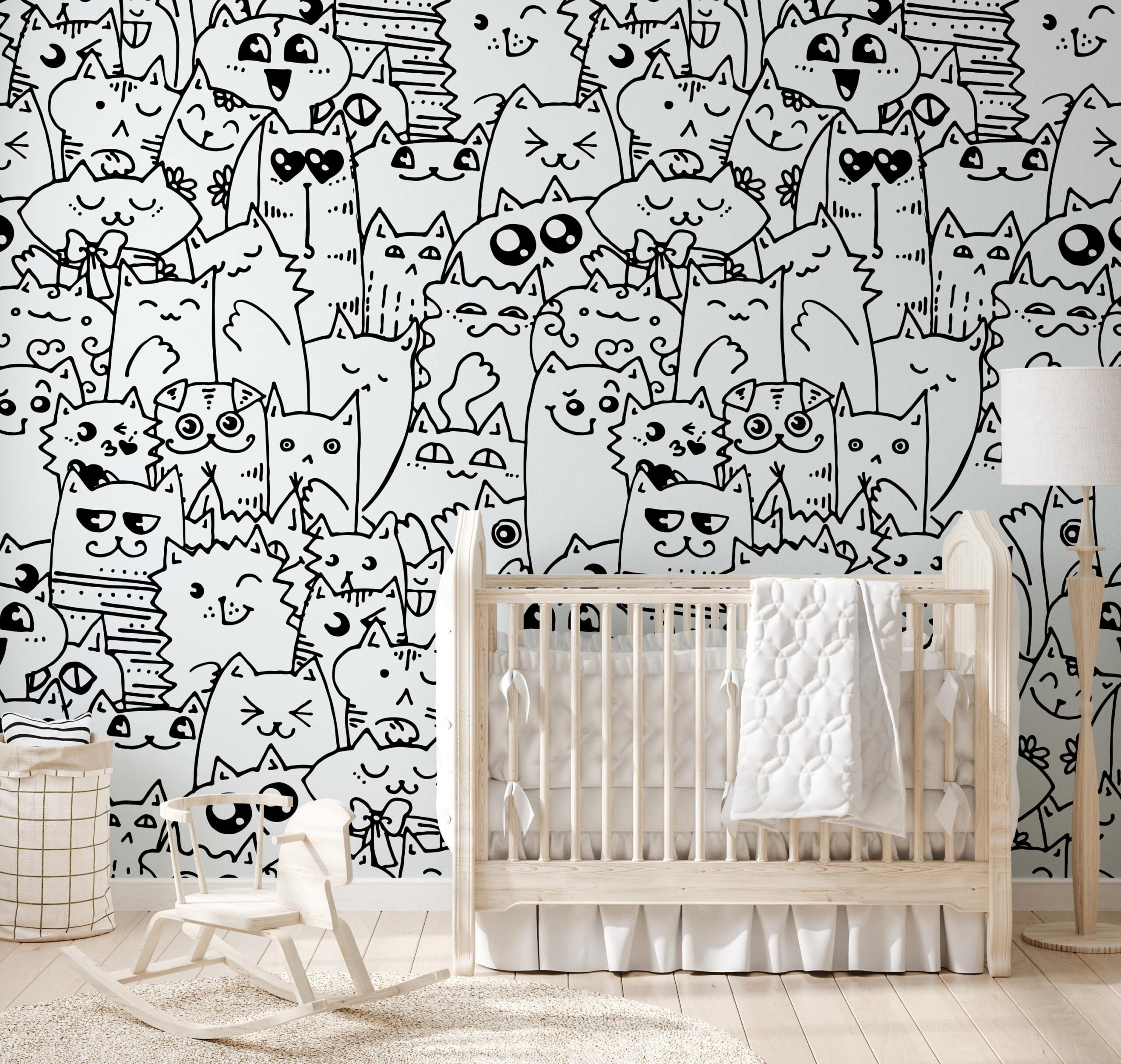 Verwandeln Sie das Zimmer Ihres Kindes mit der Fototapete „Cat Crowd“ in ein fröhliches Katzenparadies. Dieses lebendige Schwarz-Weiß-Muster ist eine wahre Parade entzückender Kätzchen – jedes mit einem einzigartigen Ausdruck, Stil und einer eigenen Persönlichkeit! Ein Muster voller Details und lustiger Zeichnungen regt die Fantasie an, inspiriert zum Spielen und zaubert jeden Tag ein Lächeln ins Gesicht.