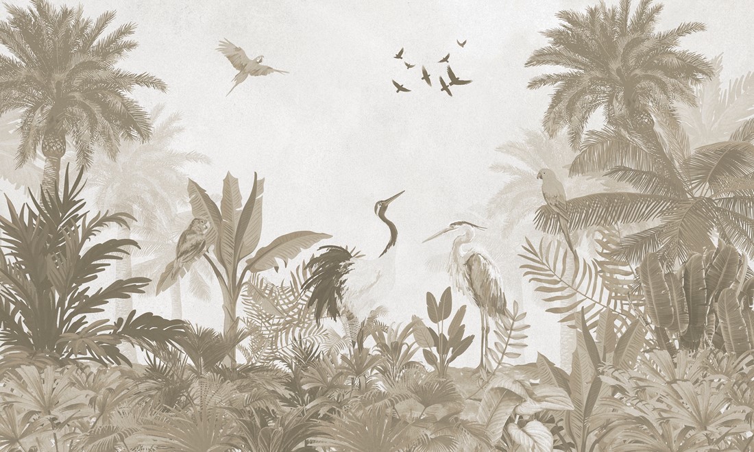 Diese einzigartige Wandtapete entführt Sie in die Welt der Natur und verleiht Ihrem Interieur einen ganz besonderen Charakter. Das Kranichmotiv in gedeckten Vintage-Farben schafft eine Atmosphäre der Harmonie und zeitlosen Eleganz. Es ist eine Dekoration, die nicht aufdringlich wirkt, sondern den Stil des Raumes subtil unterstreicht.
