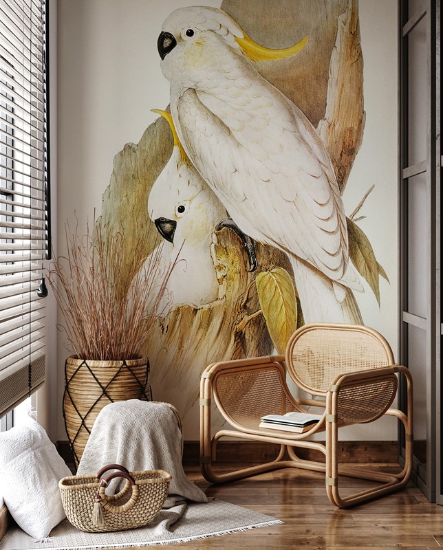 Schlagwörter: Exotische Vögel, Kinderzimmertapete, Papageien, Tropisches Wandbild, Unzertrennliche, Vogelpaar, Wanddekoration, Wärme