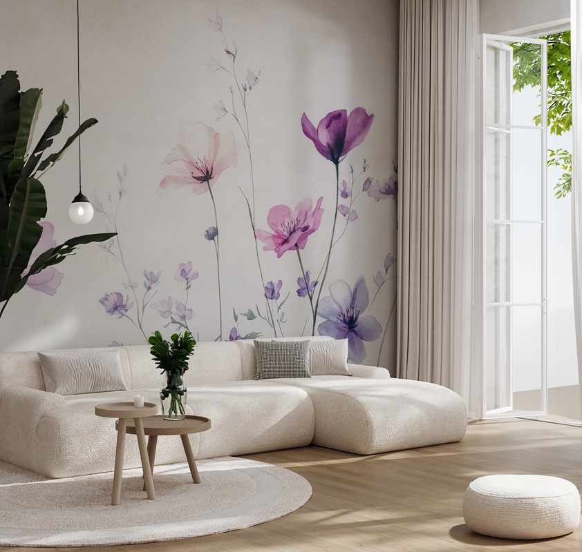 Dynamische Details im Aquarellstil und eine harmonische Palette aus Lila- und Rosatönen schaffen eine Atmosphäre der Ruhe, Gelassenheit und subtilen Romantik. Die Tapete „Purple Field Whisperers“ ist die perfekte Wahl für alle, die Wert auf von der Natur inspirierte Dekorationen, botanische Schönheit und schlichte Eleganz legen. Sie passt ideal zu skandinavischen, Boho-, Landhaus- oder Vintage-Einrichtungen und verleiht ihnen Frische und natürlichen Charme.