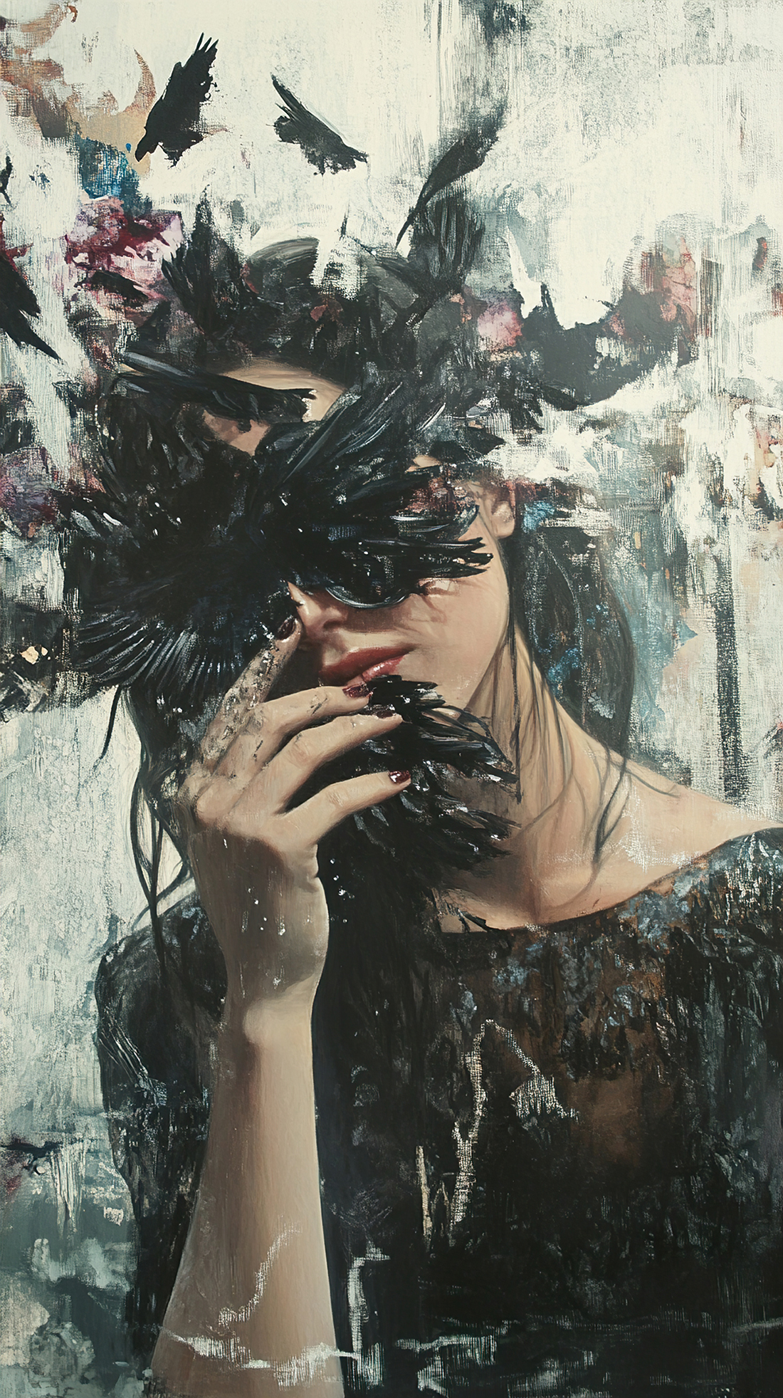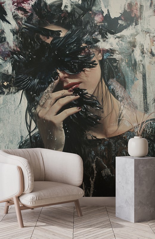 Die Fototapete „Schwarze Flügel des Geheimnisses“ ist eine anspruchsvolle Wanddekoration, die Symbolik, Eleganz und künstlerische Tiefe vereint. Das Motiv der ausgebreiteten schwarzen Flügel, die in ein Frauengesicht eingebettet sind, verleiht dem Raum eine Aura von Geheimnis, Stärke und Subtilität. Die Komposition zieht die Blicke auf sich und verleiht dem Raum Charakter – perfekt für Wohnzimmer, Büro, Bibliothek oder Entspannungsbereich. Die Fototapete „Schwarze Flügel des Geheimnisses“ ist ideal für alle, die minimalistisches Design mit Symbolik, ausdrucksstarke Motive und Interieurs mit emotionaler Tiefe und künstlerischer Dimension schätzen.