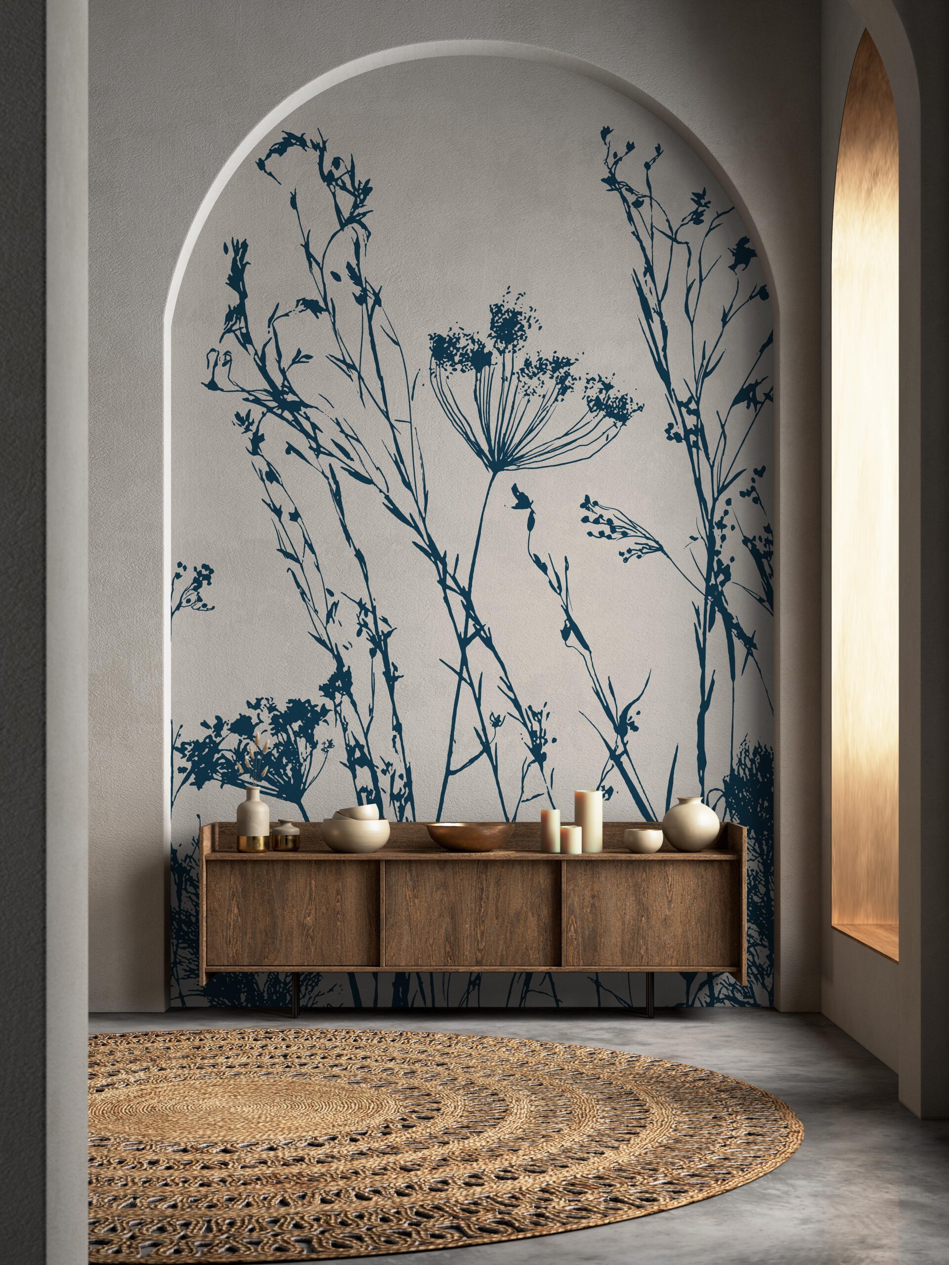 Verleihen Sie Ihrem Zuhause mit der Fototapete „Geheimnisvolle Wiesenskizzen“ eine einzigartige Atmosphäre. Dieses raffinierte Muster, inspiriert von den zarten Formen von Wiesenpflanzen, schafft eine Atmosphäre der Ruhe und natürlichen Harmonie. Die dezenten, monochromen Farben und die klaren Pflanzenkonturen verleihen dem Raum einen eleganten und zugleich frischen Charakter und ergänzen moderne wie klassische Einrichtungsstile perfekt.
