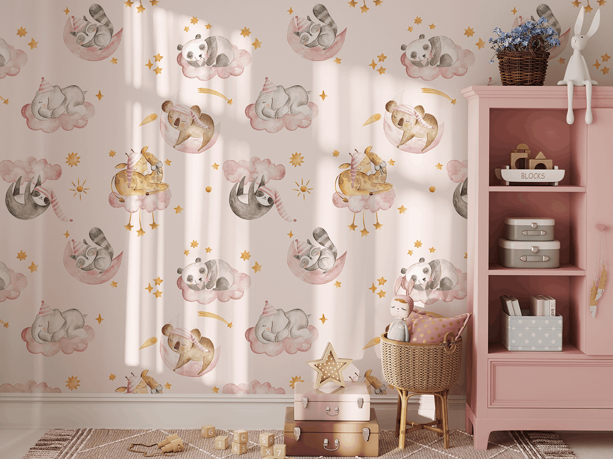 Schaffen Sie mit der Fototapete „Tierträume“ eine einzigartige Atmosphäre im Kinderzimmer. Das zarte Pastellmuster zeigt schlafende Tiere auf rosa Wolken und Monden und schafft so eine Atmosphäre voller Wärme, Geborgenheit und Frieden. Bezaubernde Motive und sanfte Farben lassen jedes Kind in eine märchenhafte Traumwelt eintauchen.