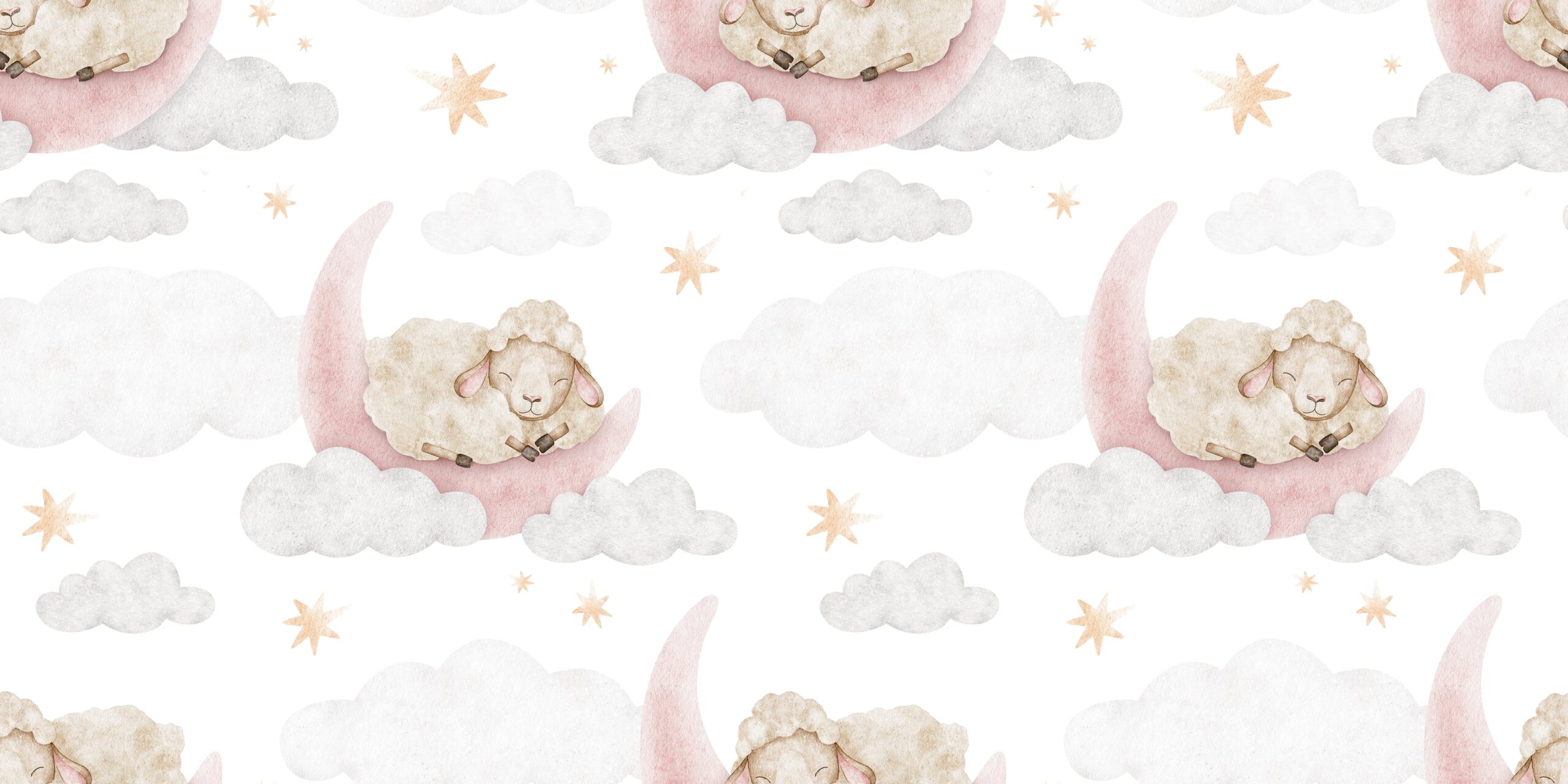 Tapete „Schlafendes Schafland“ – eine beruhigende Welt voller Träume, sanfter Wolken und kindlicher Fantasie