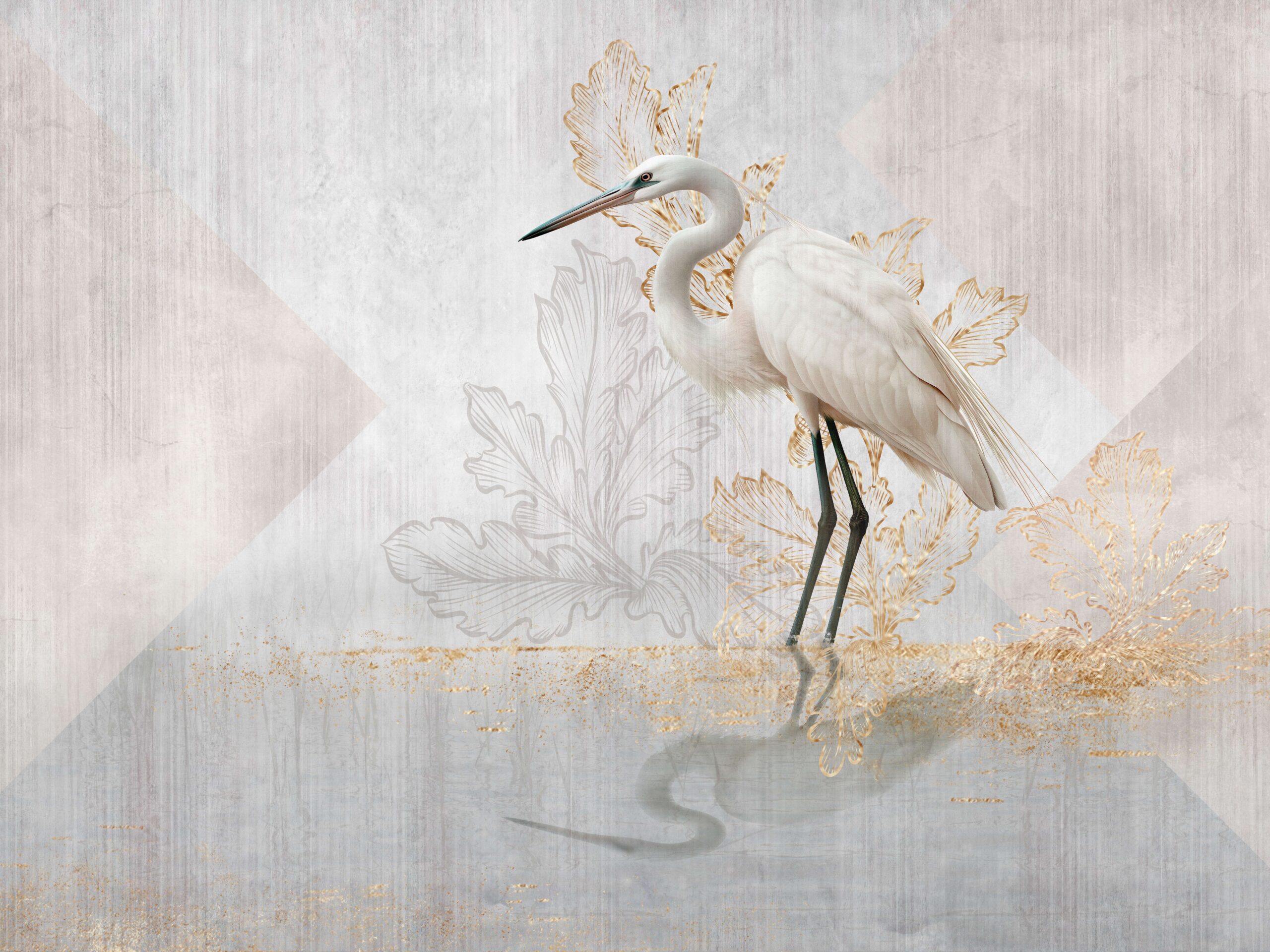 Verleihen Sie Ihrem Zuhause mit der Fototapete „Weiße Eleganz“ eine einzigartige Atmosphäre der Ruhe und Raffinesse. Die detailreich gestaltete Komposition zeigt einen schlanken weißen Vogel, umgeben von zarten, goldenen Pflanzenakzenten, die dem Interieur Subtilität und Klasse verleihen. Die hellen, gedeckten Farben harmonieren perfekt mit modernen und klassischen Einrichtungsstilen und schaffen einen Raum voller Harmonie und Leichtigkeit.