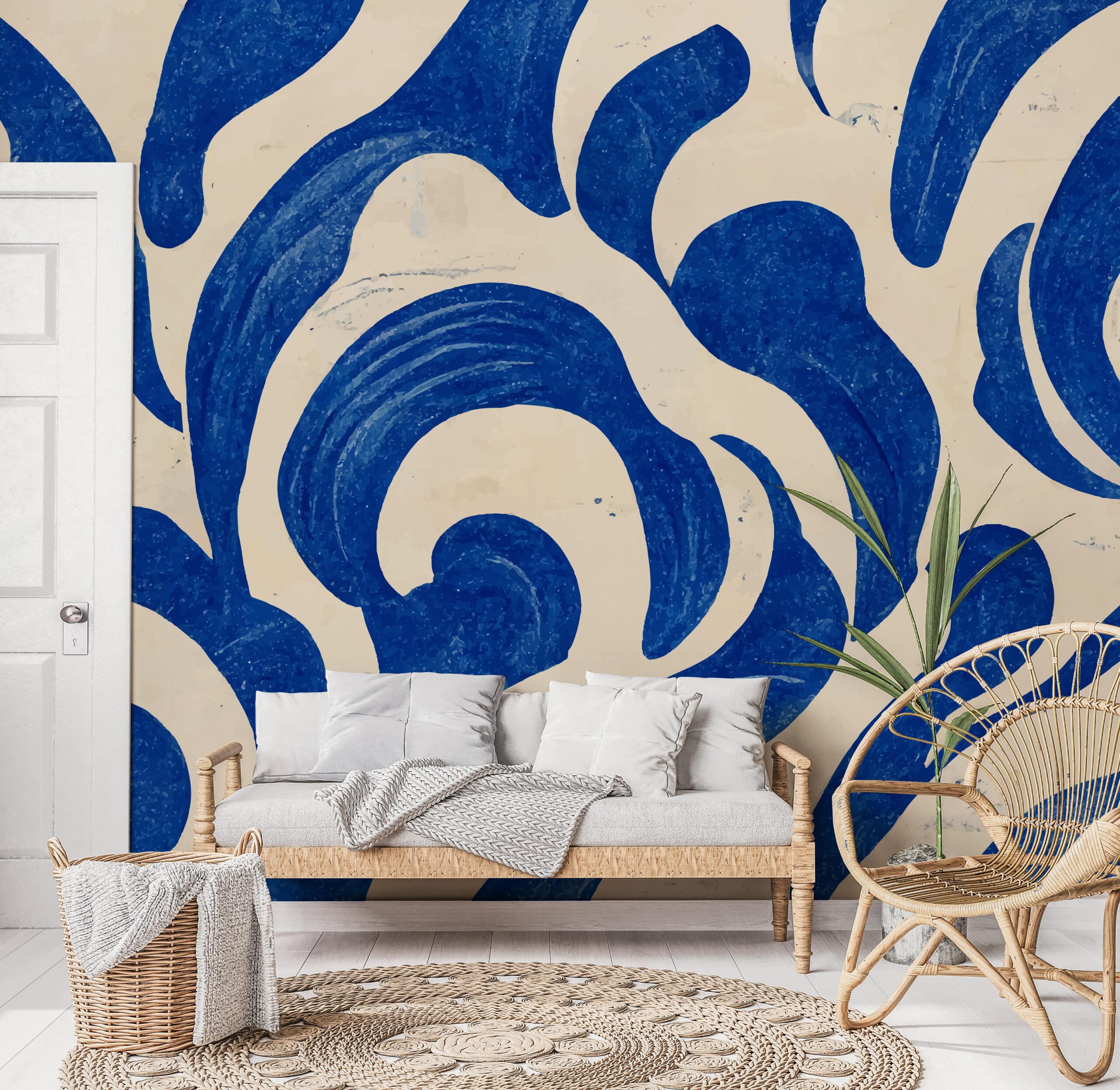 Verleihen Sie Ihrem Interieur mit der Fototapete „Wellen“ moderne Eleganz. Das stilvolle blau-weiße Muster erinnert an die fließenden Formen und die natürliche Energie von Wellen und bringt Leichtigkeit und Harmonie in jeden Raum. Die kunstvolle Komposition aus geschwungenen Linien erzeugt einen einzigartigen visuellen Effekt und verleiht Ihren Räumen Tiefe und Dynamik.
