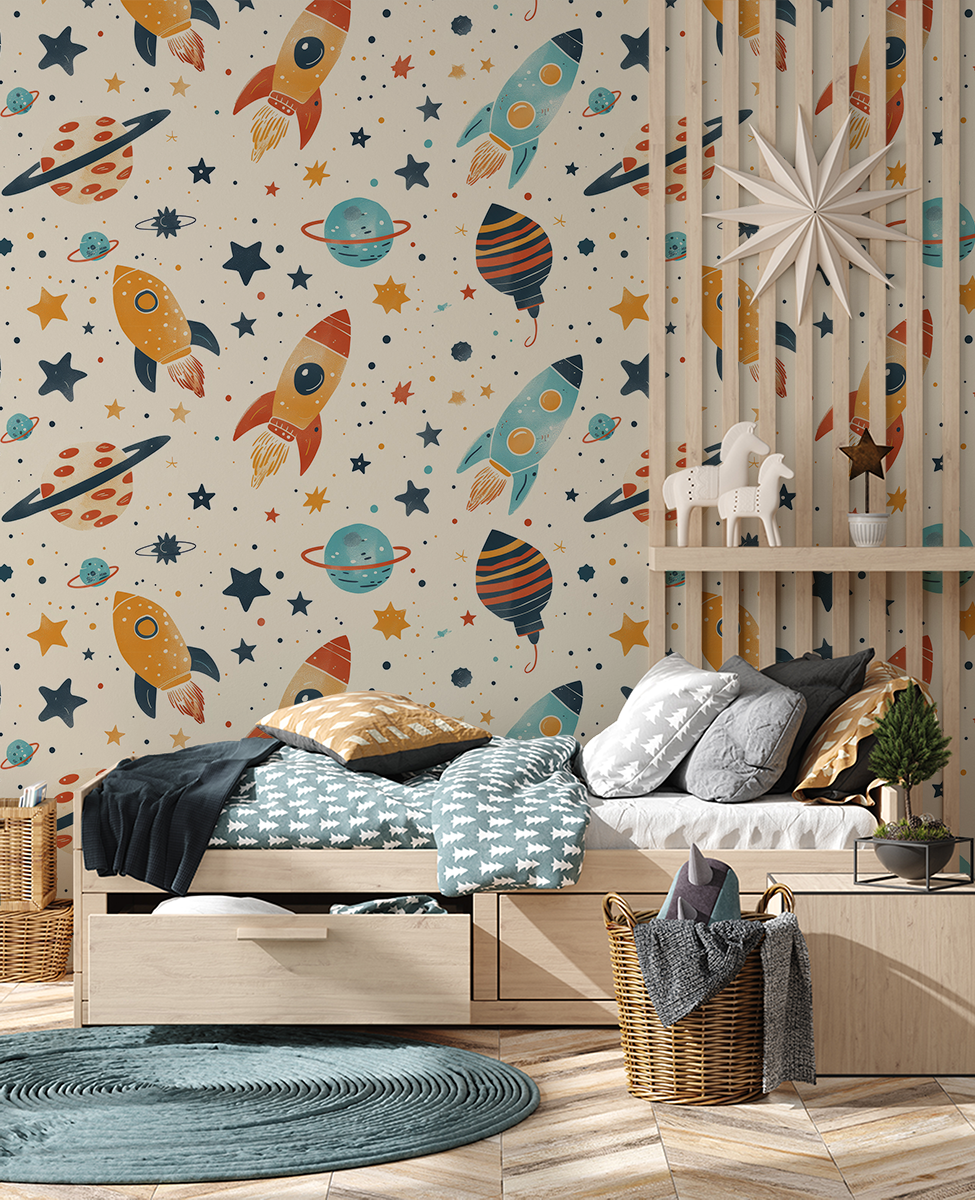 Eine Weltraumtapete ist ein zeitloses Gestaltungselement, das begeistert und täglich zu fantastischen Geschichten über ferne Planeten und interstellare Reisen inspiriert.