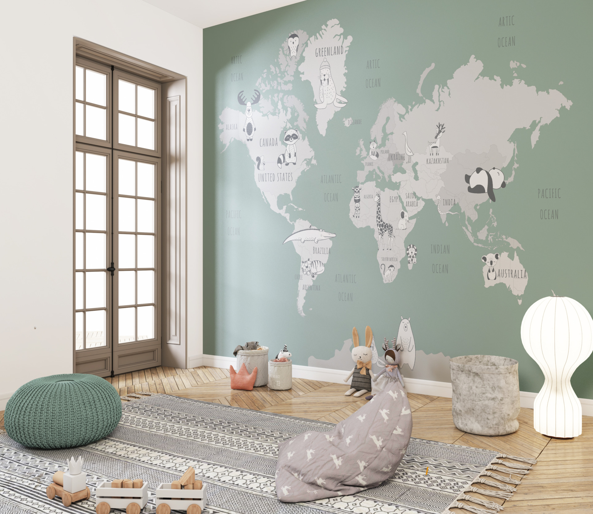 Photomural Seledyn Weltkarte