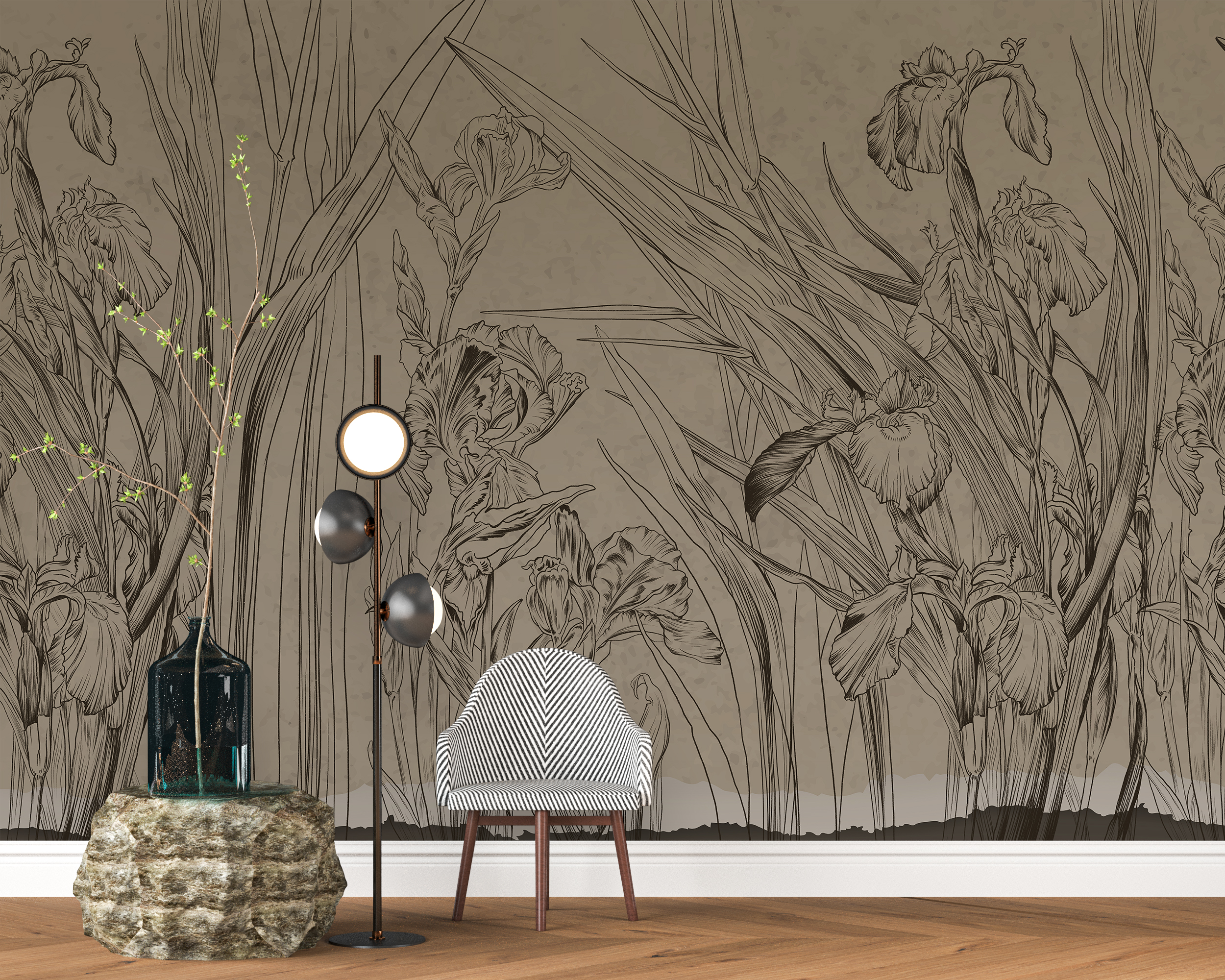 Eine einzigartige Fototapete mit schönen, hohen Blumen, die Ihrer Inneneinrichtung Frische und Eleganz verleihen. Dank des realistischen Aussehens der Blumen werden Sie sich wie in einem magischen Garten voller Blumen fühlen.
