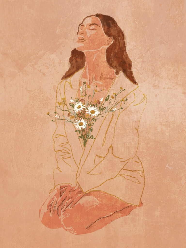 Wandgemälde Mädchen mit einem Blumenstrauß
