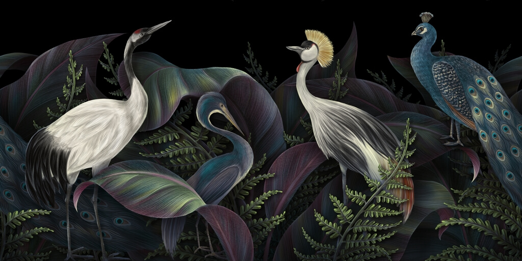 Die Fototapete Dignified Birds ist eine ungewöhnliche Kombination aus Natur und Kunst, die Ihrer Einrichtung einen neuen Charakter verleihen wird. Diese Fototapete zeigt liebenswerte Vögel in ihrem natürlichen Lebensraum, die einem Raum Subtilität und Zartheit verleihen werden.